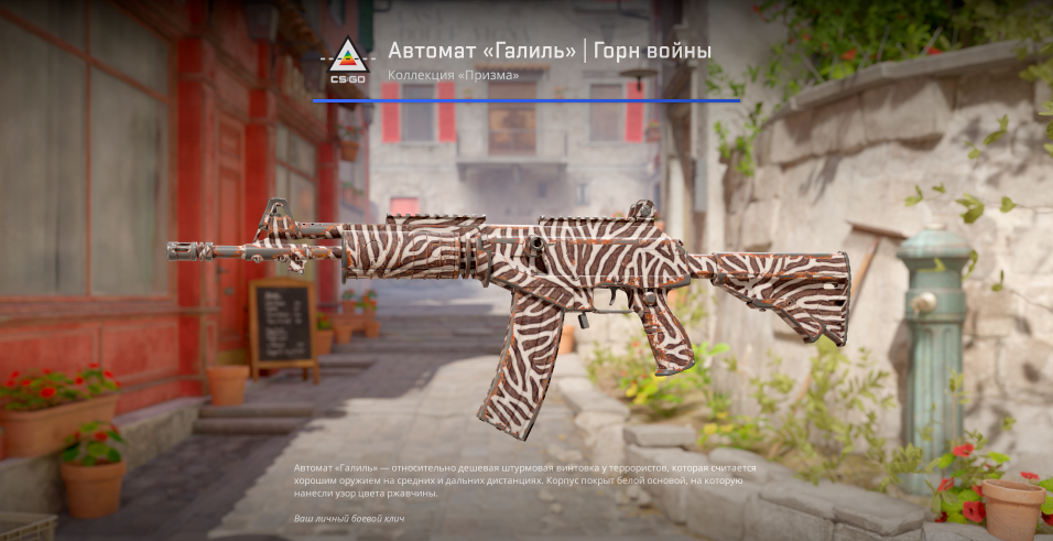 Нужно купить 10 скинов Galil AR | Горн войны в качестве «После полевых испытаний». Это дешёвый предмет ценой в 30 рублей, и именно поэтому контракт остаётся бюджетным.