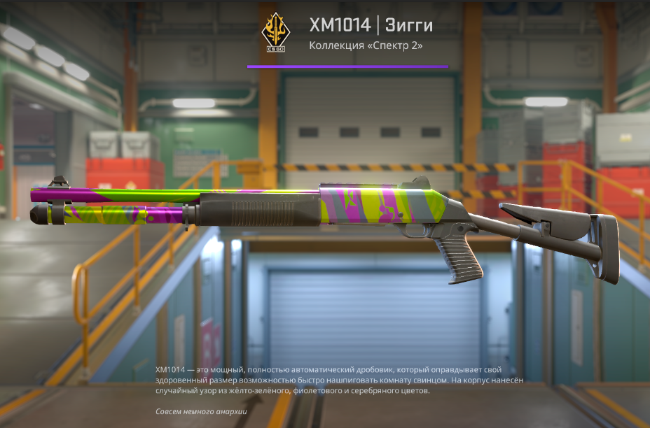 XM1014 | Зигги — нестандартный и броский скин с дизайном, напоминающим абстрактное граффити или цифровой узор. Он заметно отличается от привычных монотонных решений и сразу привлекает внимание.
