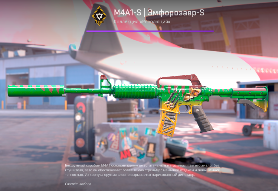 M4A1-S | Эмфорозавр-S — один из самых необычных и доступных скинов для популярной винтовки CT-стороны. Дизайн вдохновлён образом динозавра и сочетает резкие формы с контрастными цветами.