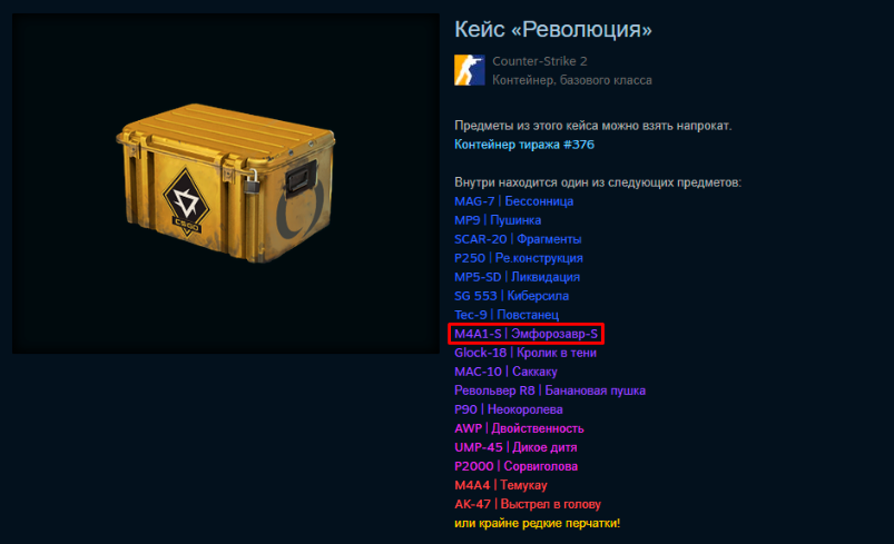 Скин относится к коллекции «Революция» и отлично подойдёт игрокам, которые хотят выделиться среди однотипных M4A1-S. Даже при умеренном износе он сохраняет почти весь визуальный стиль.