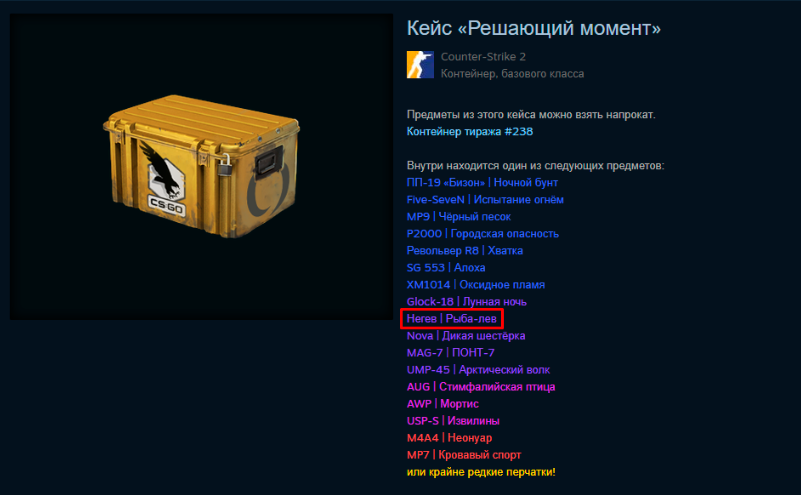 Скин из коллекции «Решающий момент» выгодно выделяется среди других пулемётных вариантов. В CS2 цвета выглядят глубже, а качество «После полевых испытаний» практически не портит общий вид.