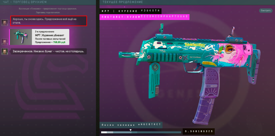 Отдельно стоит отметить наличие сертификата оригинального владельца (Original Owner Certificate). Он подтверждает, что скин был получен именно вами через терминал. После продажи или обмена этот статус исчезает.
