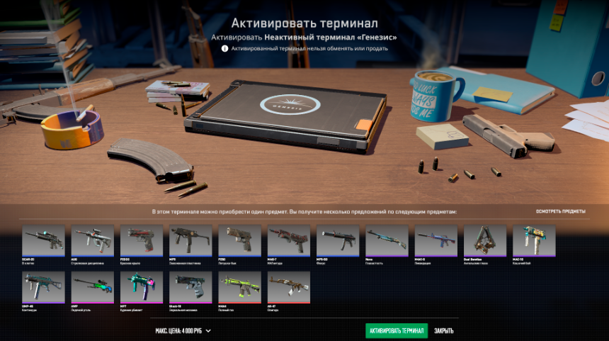 Терминал — это специальный предмет, который позволяет получить скин через систему предложений.
