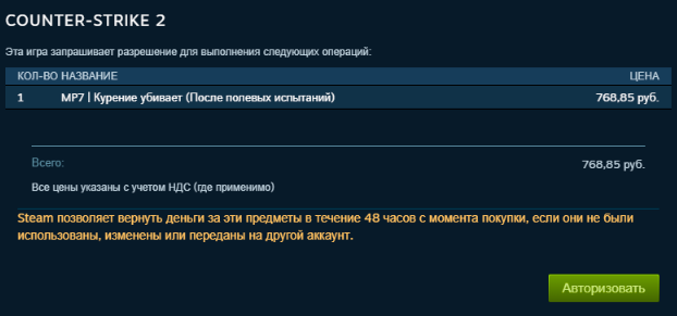 Если предложение устраивает — скин можно купить сразу за средства с баланса Steam.