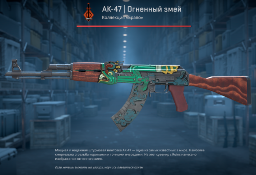 Детализированное изображение мифического змея в огне делает его одним из самых красивых AK-47 скинов 2025.