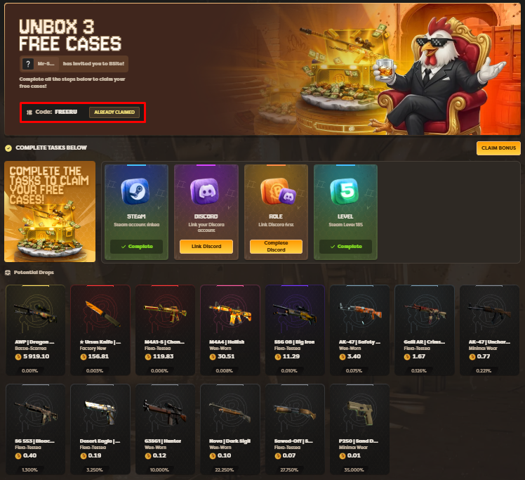 Промокод на бесплатные кейсы