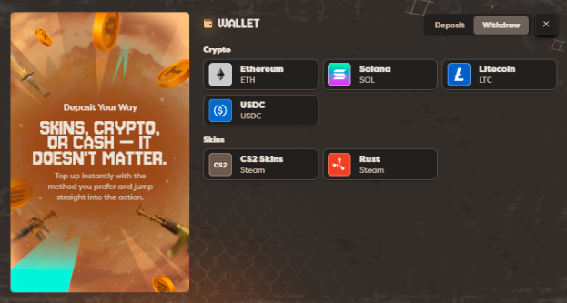 скинами из CS2 и Rust;