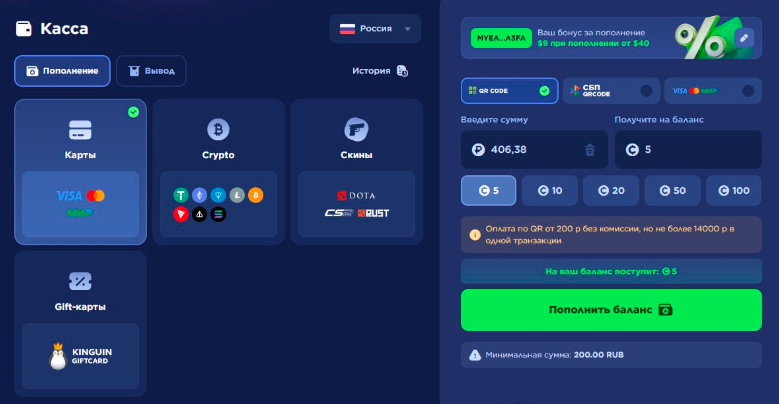 CSFAIL предлагает удобные и разнообразные методы для пополнения вашего счета и вывода средств, чтобы вы могли легко управлять своими финансами. Ознакомьтесь с вариантами: