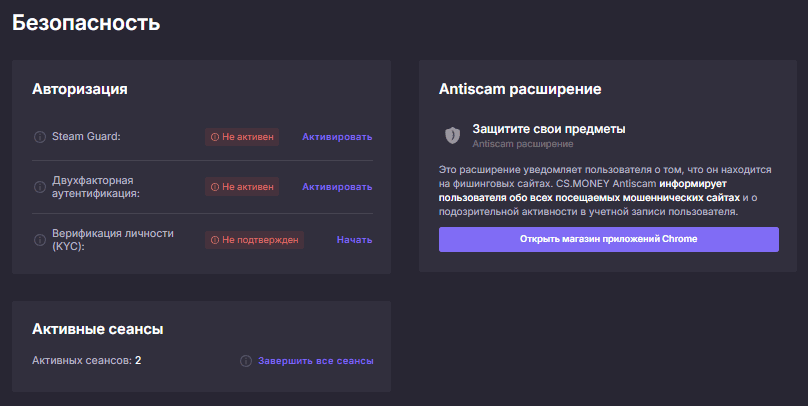 CSMONEY — надежная онлайн-площадка с высоким уровнем безопасности и сохранности персональных данных пользователей. Почему сайту можно доверять: