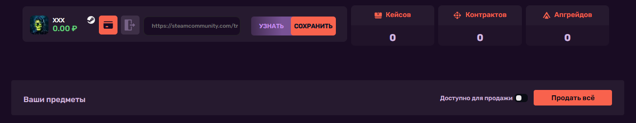 Личный кабинет. Здесь вы найдете свой инвентарь и статистику активности на сайте.