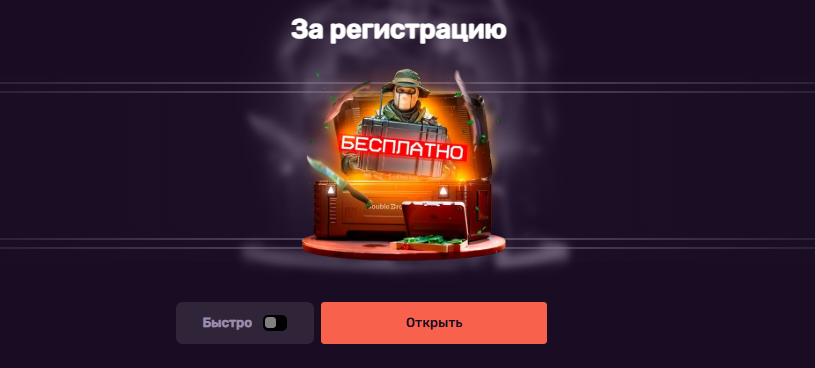 Бесплатный кейс при регистрации. Каждый новый пользователь получает бесплатный кейс сразу после регистрации. Никаких дополнительных действий не требуется – просто и откройте свой первый кейс!