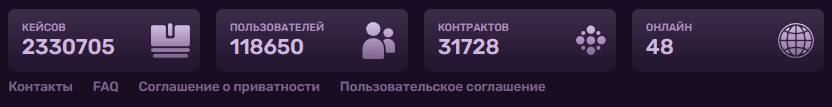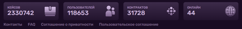 Футер. В нижней части сайта размещены контакты, раздел FAQ и пользовательское соглашение.