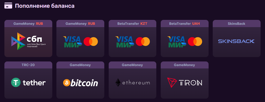 Пополнить баланс на DoubleDrop легко и удобно благодаря широкому выбору платежных методов: