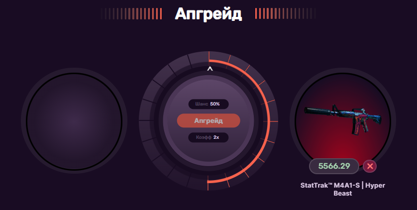 В разделе «Апгрейд» вы можете улучшить свои скины с определённым шансом. Как это работает: