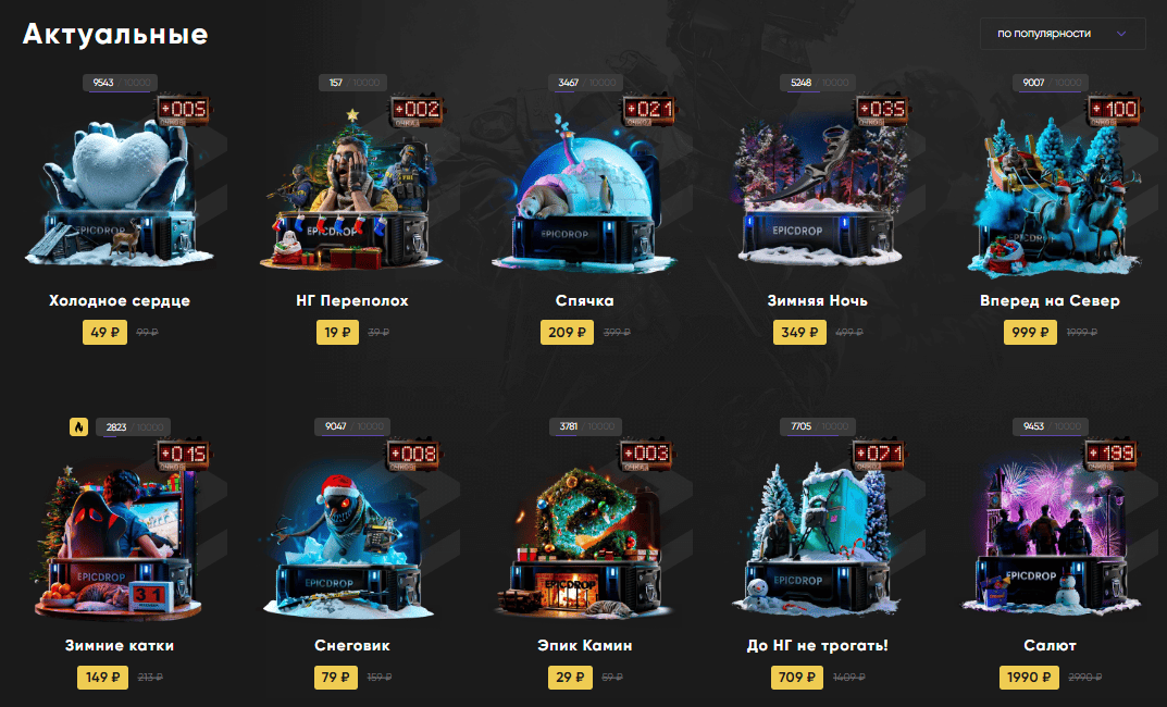 Epicdrop предлагает уникальную мини-игру "Завод подарков" в рамках зимней операции. За снежинки, которые можно заработать через задания, пользователи открывают подарки, а в них могут быть как бонусы, так и скины или баланс на сайте. Кроме того, есть "Скино-генератор", где можно бесплатно получать скины и улучшать их стоимость.