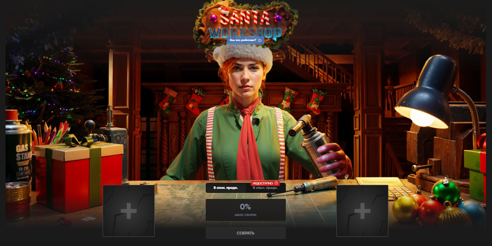 В "Мастерской Санты" вы сможете апгрейдить свои скины, повышая их стоимость или трансформируя в новые предметы для вывода на Steam. С каждым новым заданием открываются дополнительные слоты для хранения скинов.