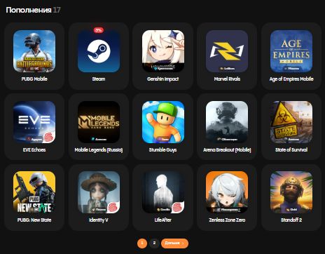 Gamelight предлагает пополнение игровой валюты для множества популярных игр, включая: