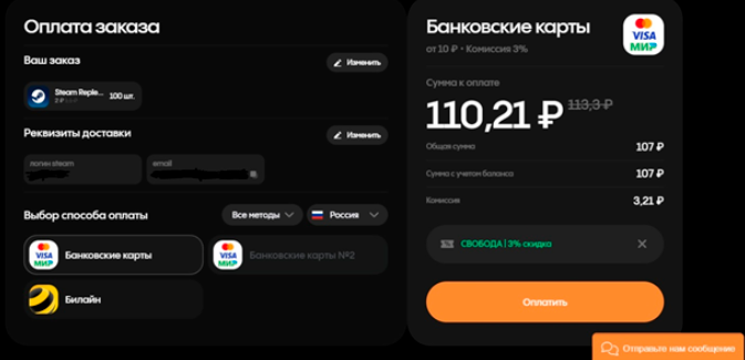 Для пополнения баланса Steam используйте промокод «СВОБОДА» (скидка 3%).