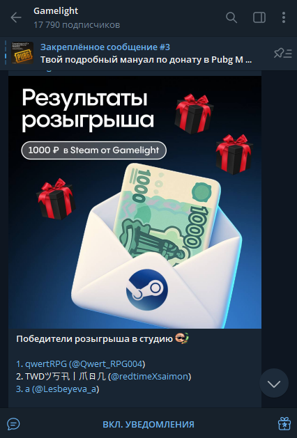 Gamelight активно взаимодействует с аудиторией через Telegram-канал, где публикуются: