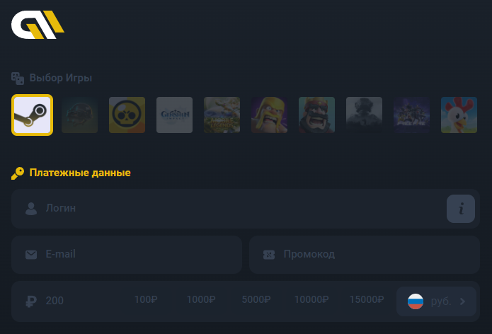Указываем логин, пополняем баланс (при пополнении игр, проверяйте метод указания логина/ника).