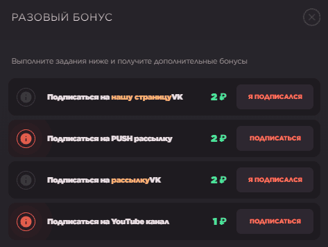 Разовый бонус: Даёт бонусный баланс за выполнение заданий – максимум можно получить 7 рублей себе на баланс. Задания можно посмотреть в разделе «Бонусы».