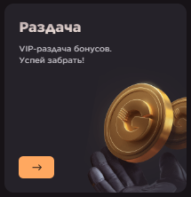 Раздачи: Проводятся специальные VIP-раздачи в разделе бонусы. За их началом стоит следить в официальных ресурсах проекта.