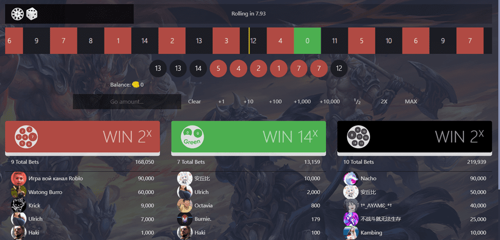 Рулетка. является довольно классической игрой, где для ставки доступно 3 цвета – красный (2х), чёрный (2х) и зелёный (14х).