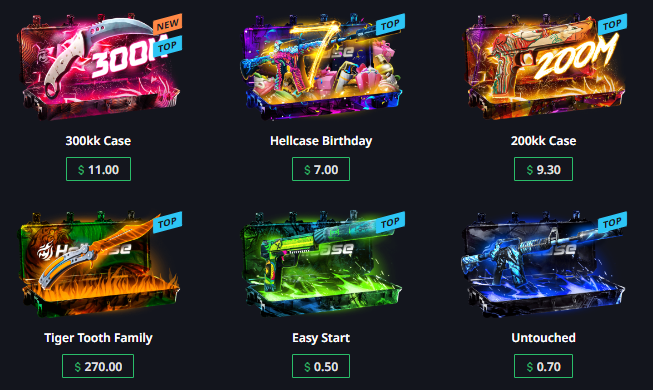 Hellcase – один из самых популярных зарубежных сайтов по открытию кейсов CS2, Dota2 и Rust, который популярен своей коллекцией кейсов, доступных для открытия.