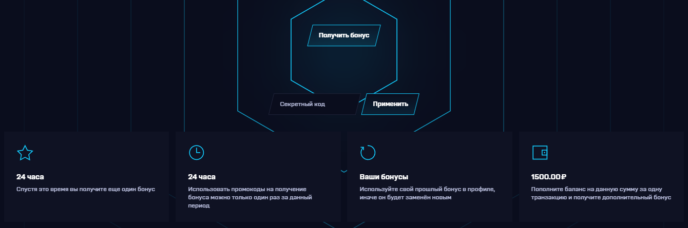 Обычные промокоды: обновляются ежедневно и активируются при пополнении от 500 ₽.
