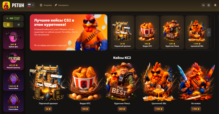 Обзор Petuh — игровой сайт с кейсами CS2, апгрейд и контракты