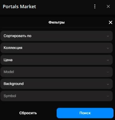 Portals предлагает продвинутые фильтры: сортировка по коллекции, типу, цвету, узору фона, цене, популярности, ID и редкости предмета.