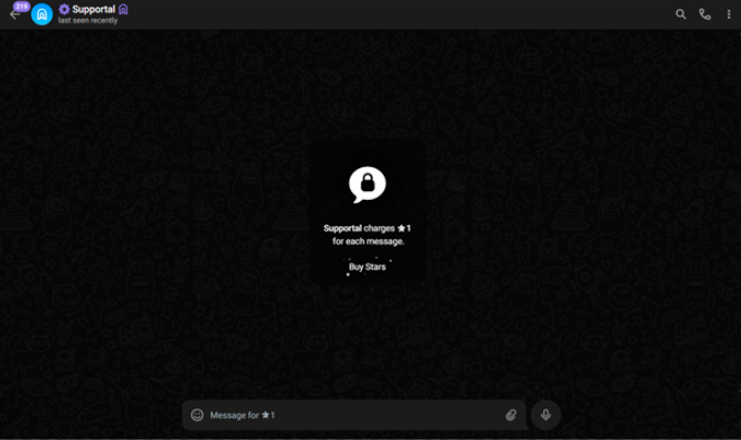 Техподдержка доступна через Telegram-бота. Ссылку можно найти в канале Portals Community или в настройках маркетплейса. Сообщение в поддержку стоит 1 Telegram Stars, что может быть неудобно. Однако техподдержка оперативно решает любые вопросы.