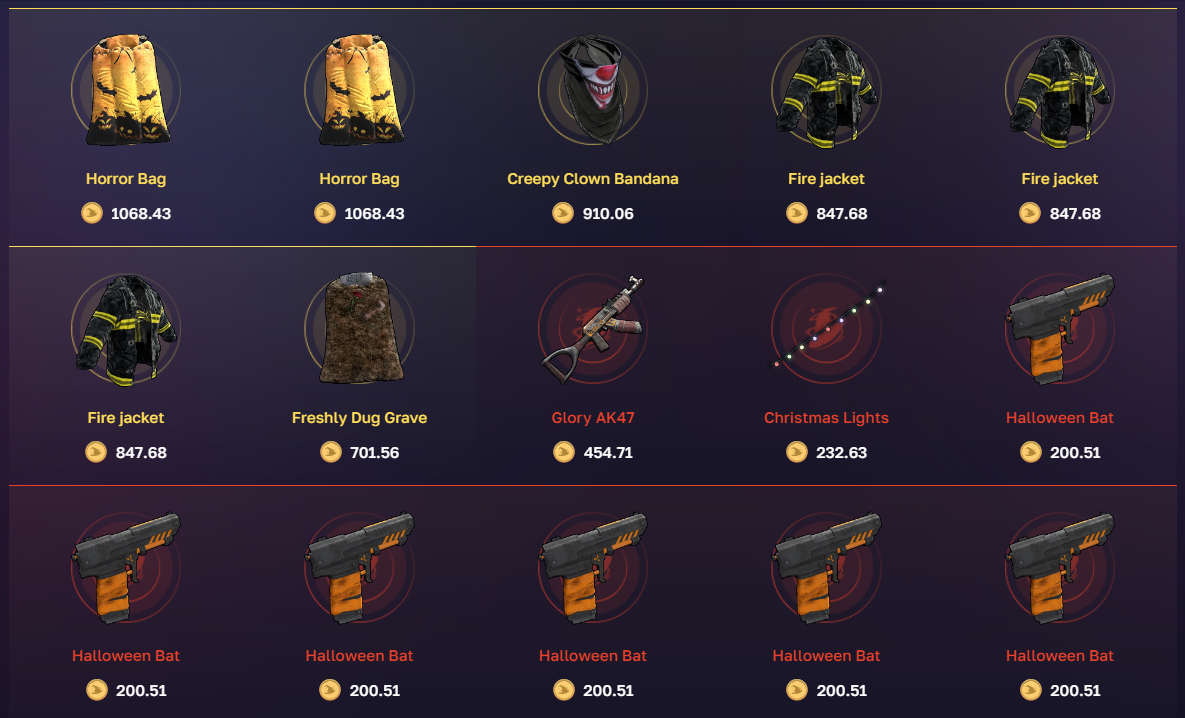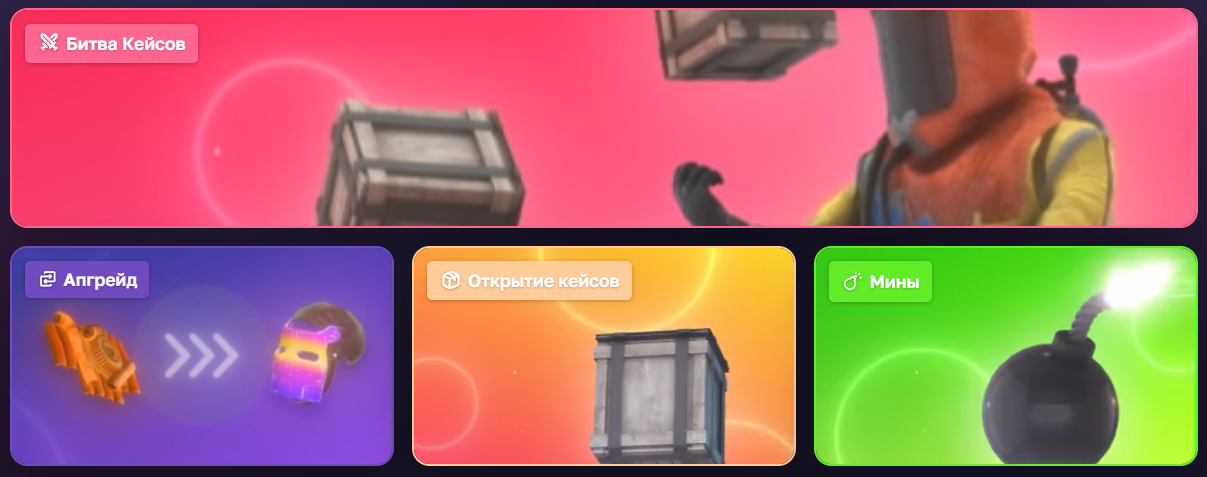 Кейсы. Для открытия доступны множество кейсов, расположенных в самом разном ценовом диапазоне.