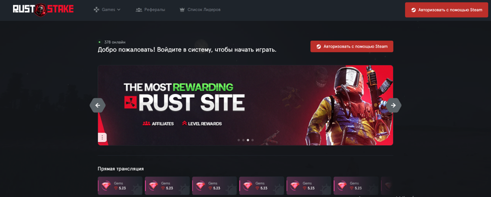 Ruststake – это игровой сайт от создателей популярного сайта по тематике CS2 CSGOStake, направленный на аудиторию игры Rust. С помощью своего разнообразия игр на сайте и бонусов, фанаты игры могут легко заполучить новые скины на Ruststake прямо в свой Steam инвентарь.