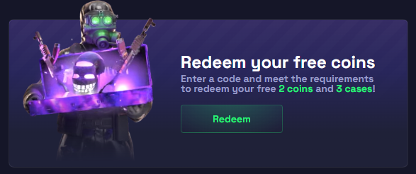 Промокод. При введении промокода друга, пользователю даётся бесплатно 2.00 местной валюты, 3 бесплатных кейса, а также некоторый процент рейкбека.