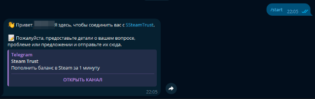 SteamTrust – перспективный сервис для пользователей Steam, обеспечивающий простое и выгодное пополнение баланса. Главные плюсы: высокая скорость зачисления, отзывчивая техподдержка и множество способов оплаты.
