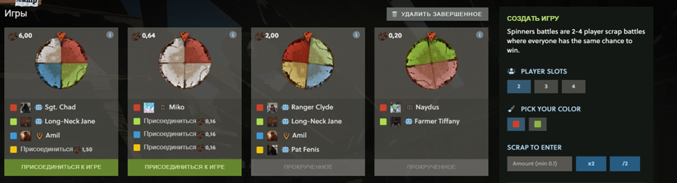 Spinner Battles: A mode where players choose their color. After spinning the wheel, a winner is selected who takes all players' bets.