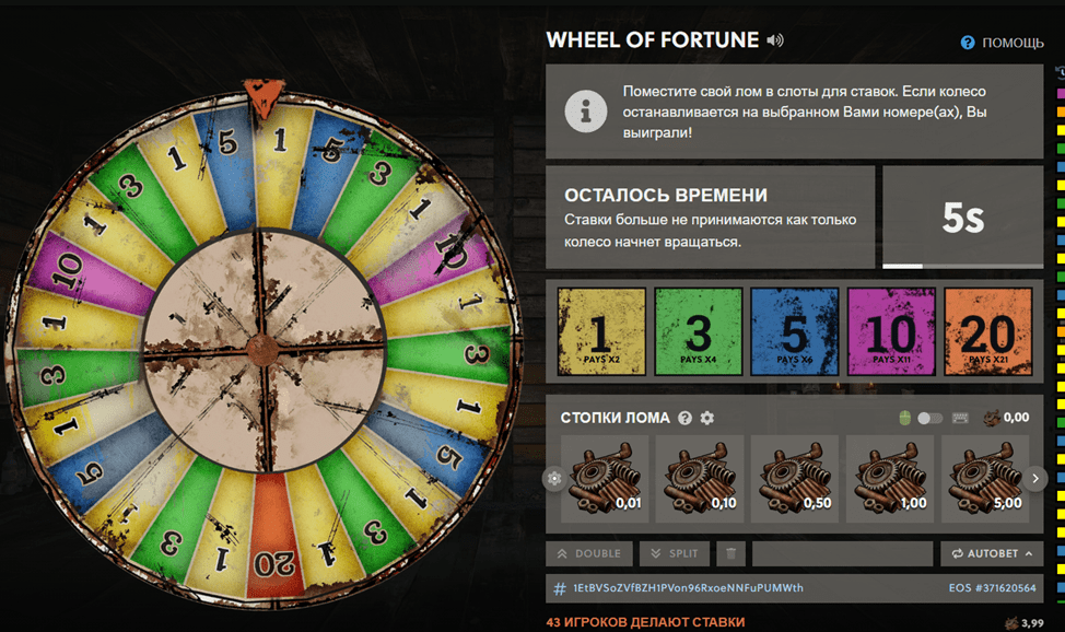 Wheel of Fortune: A wheel where users place bets on the cell they're interested in. Cells have multipliers: 2x, 3x, 5x, 10x, 20x.