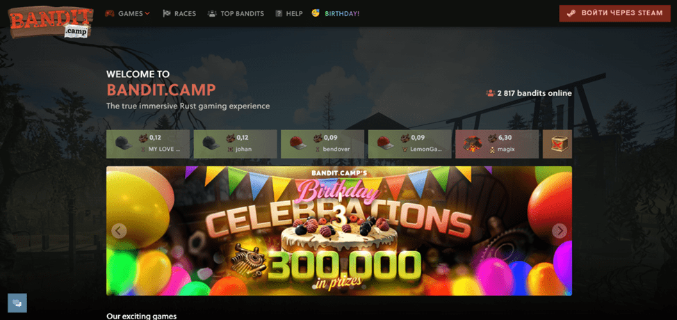 Banditcamp is a great choice for Rust game enthusiasts. Players also enjoy frequent bonuses and good player relations.