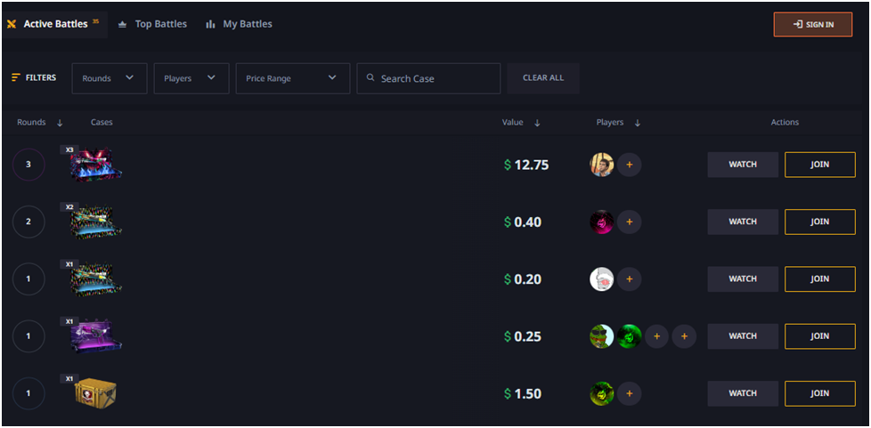 This is a PvP mode where players compete to see who gets the best drop from a case. The player with the best drop takes the other skins that dropped for the players.