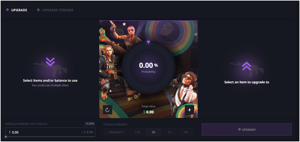 A mode where players upgrade their skins to ones they prefer. The higher the price range of these skins, the lower the chance of success.
